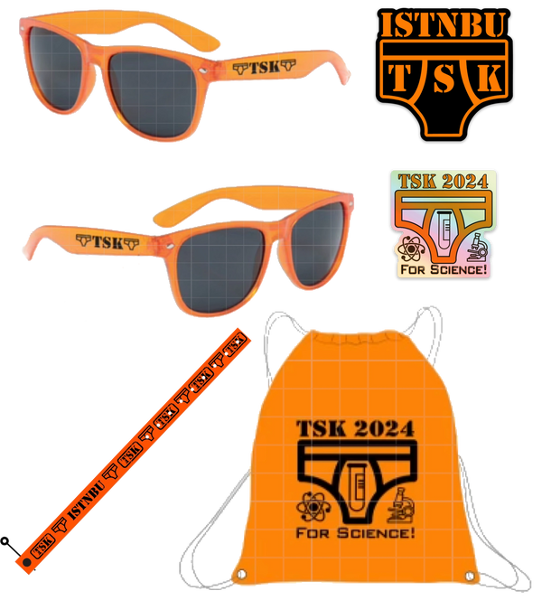 Also included in every Bieber Package will be a pair of (of course) orange sunglasses. Additionally, every fully paid package purchasing attendee will get TSK stickers and a TSK cinch sack for carrying who knows what...